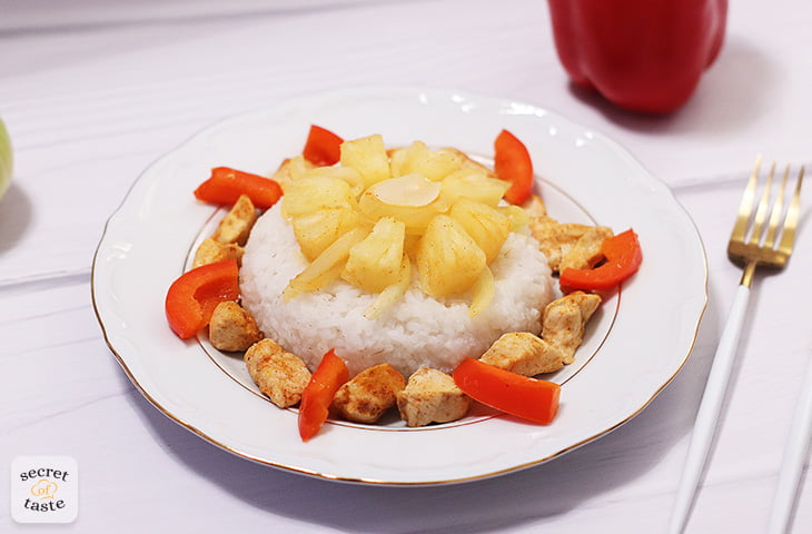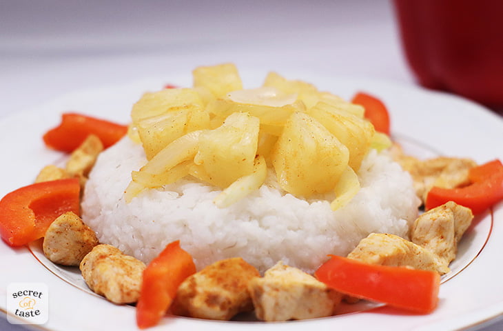 Kurczak z ananasem i papryką, podany na ryżu, to oryginalne połączenie smaków - idealny pomysł na szybki obiad.Składniki