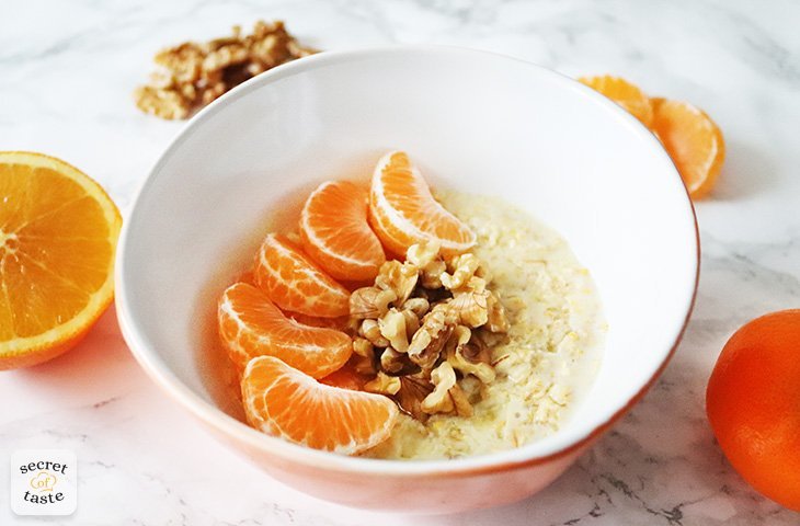 Aromatyczna i rozgrzewająca owsianka z wyczuwalną nutą pomarańczy, mandarynek oraz orzechów włoskich to idealna propozycja na chłodne poranki.Składniki